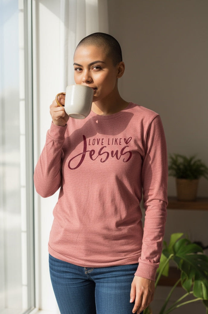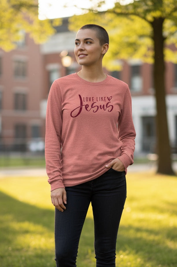 This "Love Like Jesus" long sleeve tee blends the softness of cotton with the durability of polyester, ensuring lasting comfort and shape retention. Its breathable fabric makes it perfect for layering or wearing on its own, while the inspiring message encourages a meaningful expression of faith through everyday wear. Ideal for those seeking both style and purpose in their wardrobe.