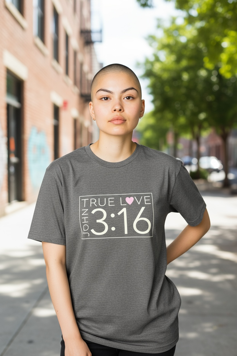 Experience the ultimate in comfort and style with True Love John 3:16 premium quality tee. Made with a blend of polyester and cotton, this tee is super soft, lightweight, and durable. It fits true to size and won't shrink, making it the perfect addition to your wardrobe. Show your faith in style with our top-quality Christian t-shirt.